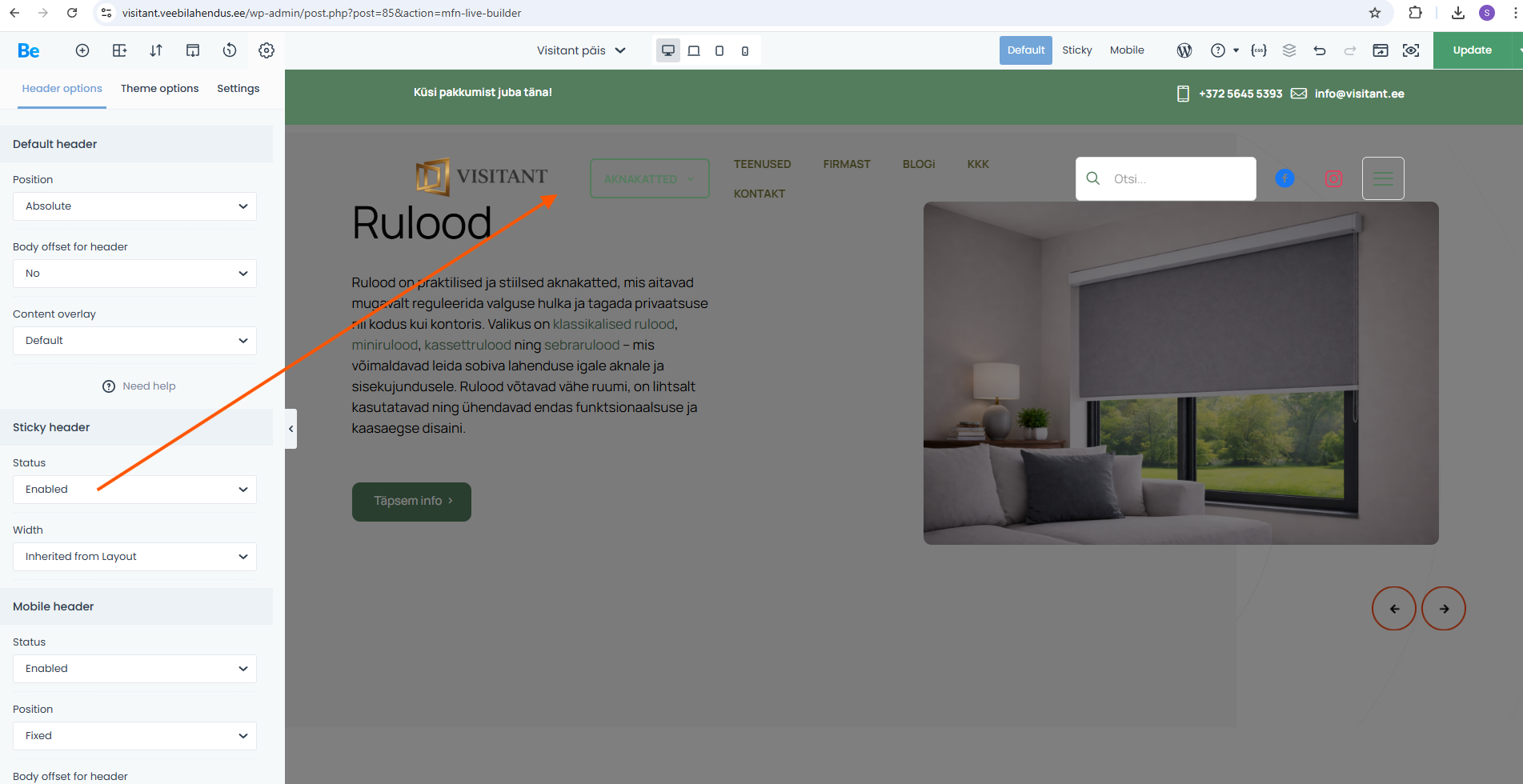 I would like the header to be sticky (I am using a template). It was working before, but after I made the header transparent, the sticky behavior stopped working, even though the “Sticky Header” option is enabled.