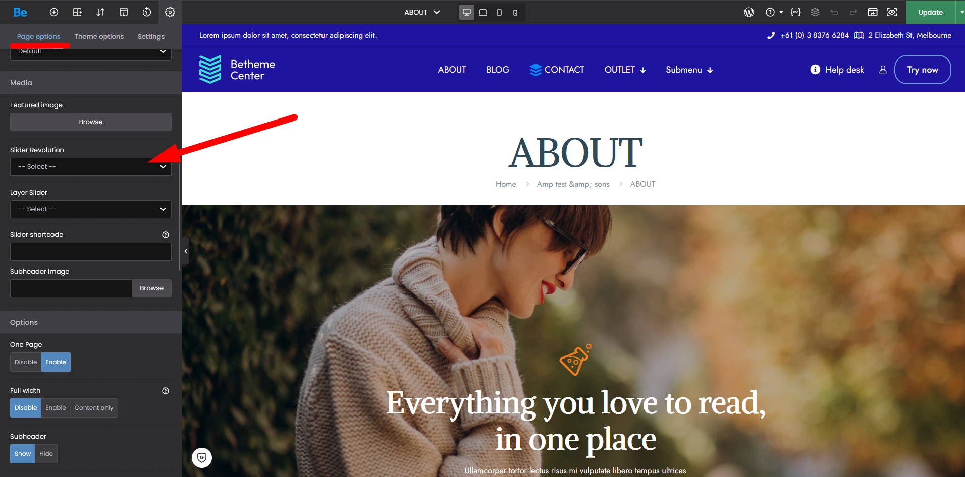 If you successfully imported the slider, open the page where you want to place this slider, go to Page Options, and set the slider there: