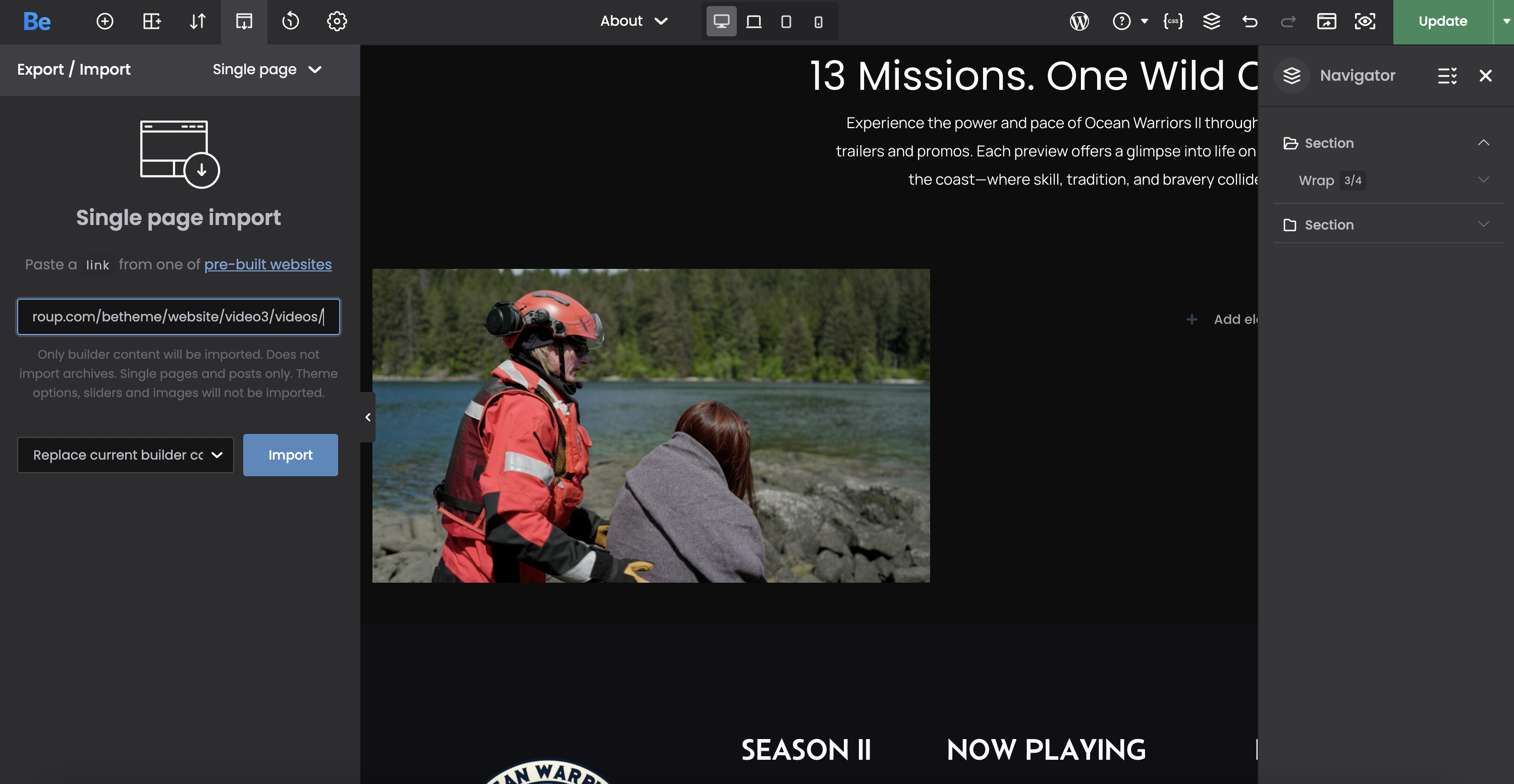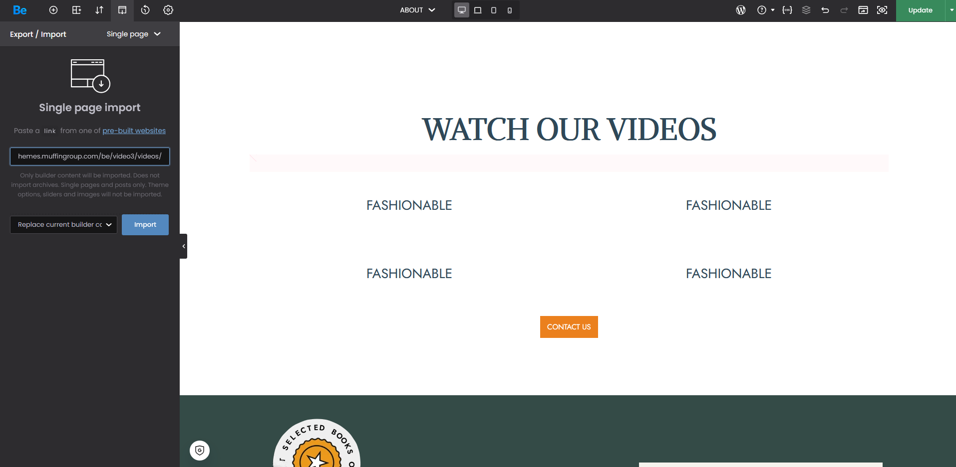Single page import option not working in BeBuilder