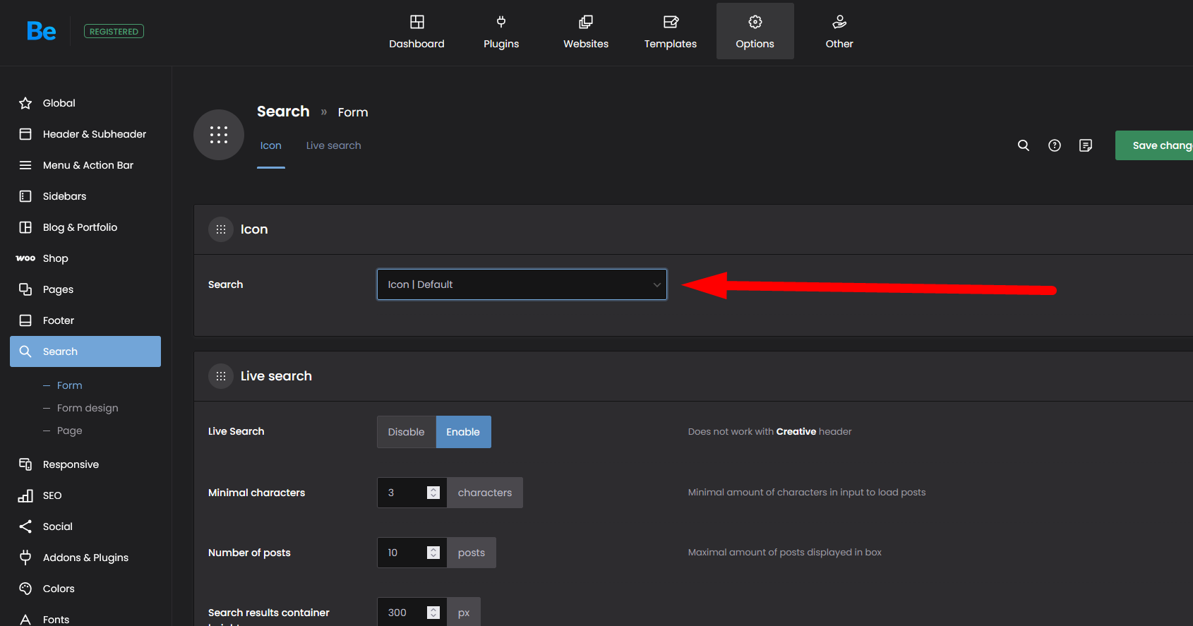 Please go to Betheme -> Theme options- > Search -> Form, and switch the search to Default:
