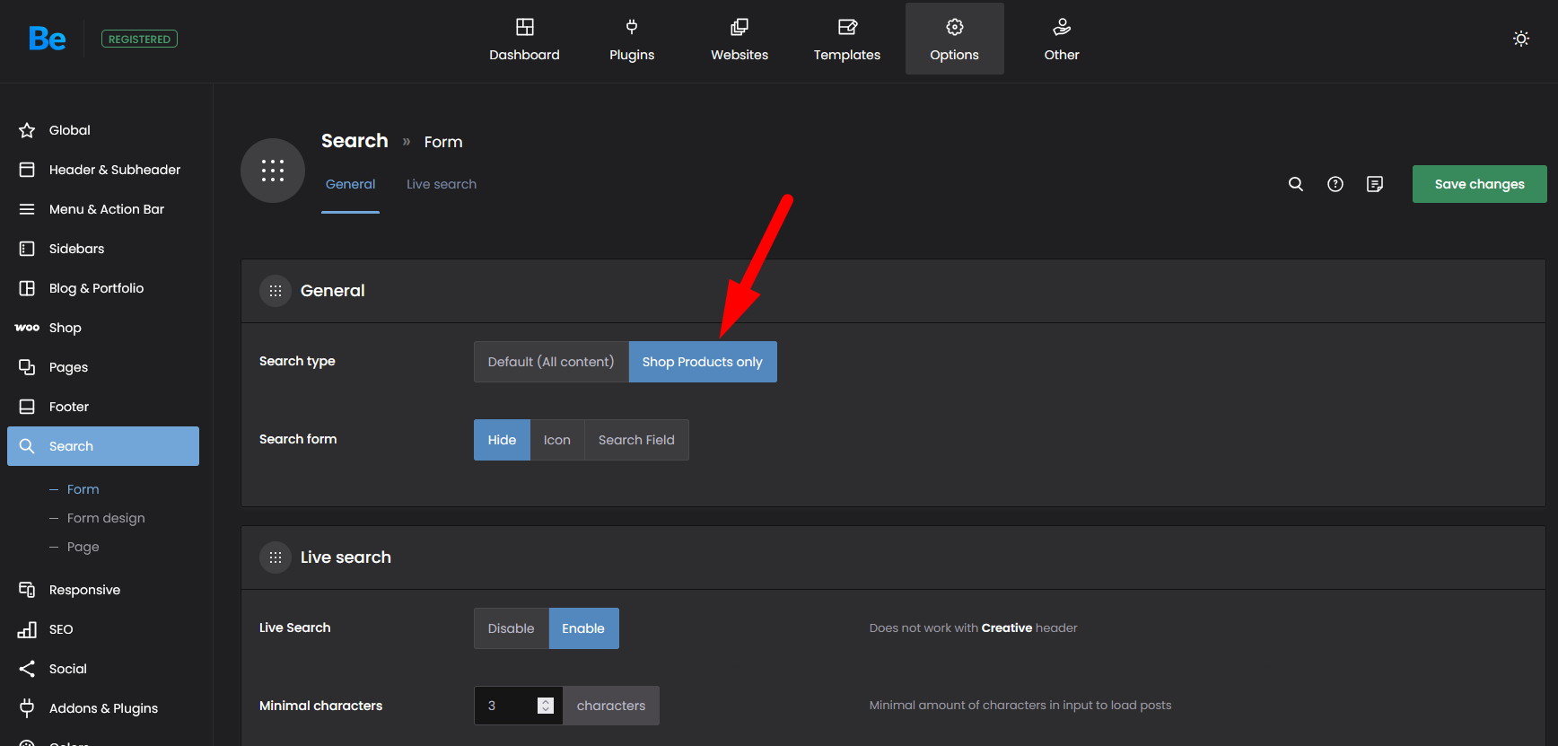 2) If in the Theme options -> Search Form, you set "Shop Products only" then the WooCommerce product search is in use.
