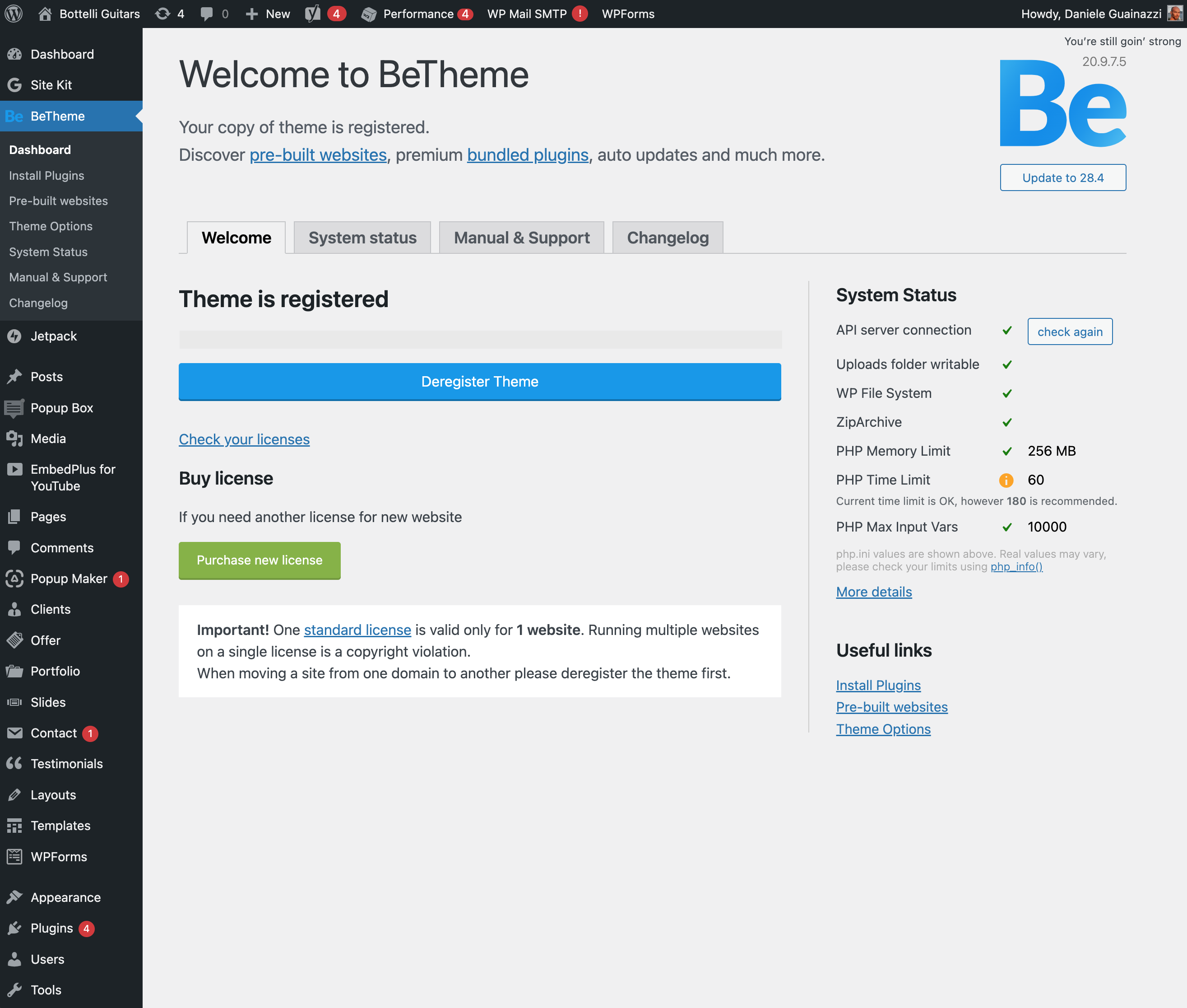 Hello, we’re writing to you because we’ve purchased a new licence, as ours had expired some time ago and needed updating, but we can’t enter the new purchase code, and when we try to deregister the theme, it won’t let us. We’re stuck – could you help us?