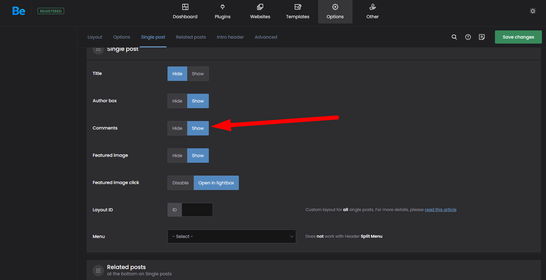 We're using a template for our single blog posts - can we use "comments" when we do? They're not showing it seems.