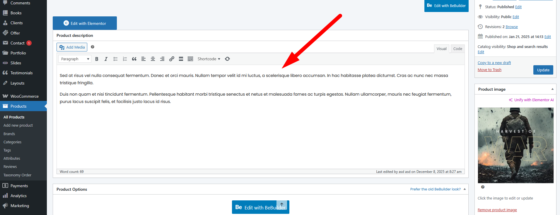 • Some parts must be managed with BeBuilder, and some must remain in the standard WordPress/WooCommerce editor