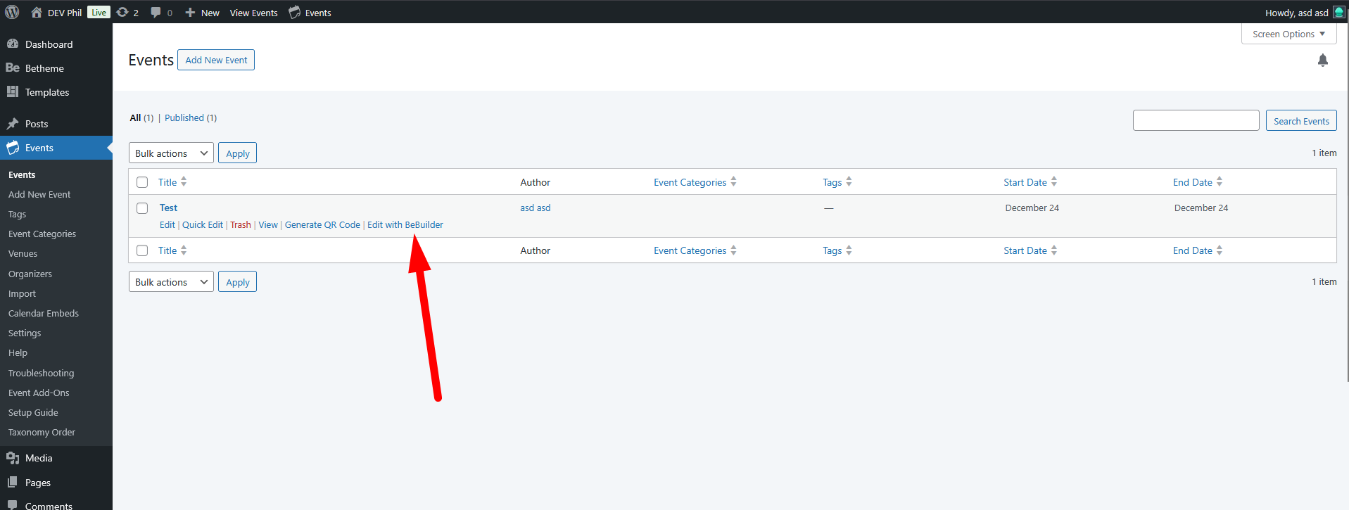 I have a "The Events Calendar" plugin. After creating a event, I cannot find a way to use the header + footer template that i've created with BeBuilder.